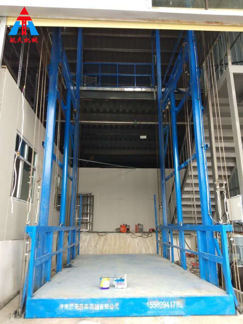 載車導(dǎo)軌式升降平臺,主要用于樓層間高空貨物運(yùn)輸。載重1-50噸,升高高度1-25米。室內(nèi)、室外均可安裝導(dǎo)軌式升降機(jī)也叫做液壓提升機(jī),提升高度高,采用旁置油缸,運(yùn)行平穩(wěn)、噪音低、維修方便、使用壽命較長,停電時,可使用手動應(yīng)急下降,安全、方便、快捷、實用,地坑深度一般為15cm-30cm,頂層高度不受限制,可根據(jù)現(xiàn)場環(huán)境定做用,適合2-3層鋼結(jié)構(gòu)或混凝土廠房,內(nèi)外部均可使用。